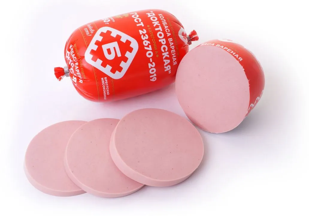 Колбаса "Докторская категории А" 650 грамм Брестский мясокомбинат — Белорусские колбасы фиксированный вес оптом из Беларуси.