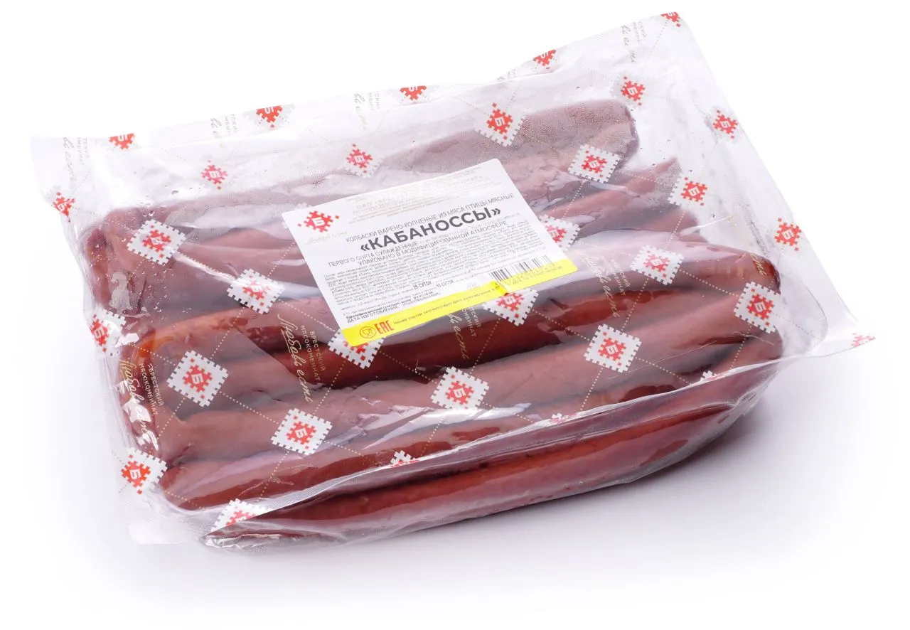 Купить Колбаски варено-копченые «Кабаноссы» газ можно с доставкой по Новосибирске. Мы гарантируем отличное качество и свежесть наших белорусских колбас!